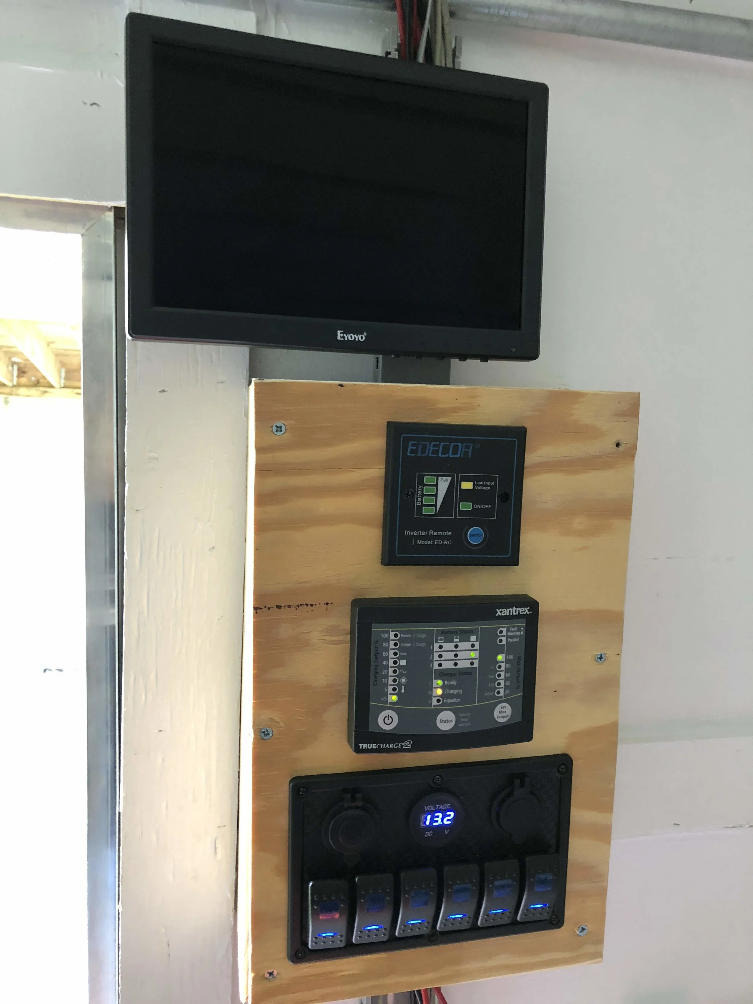 The unpainted panel with the switches, battery charger control and the inverter control.