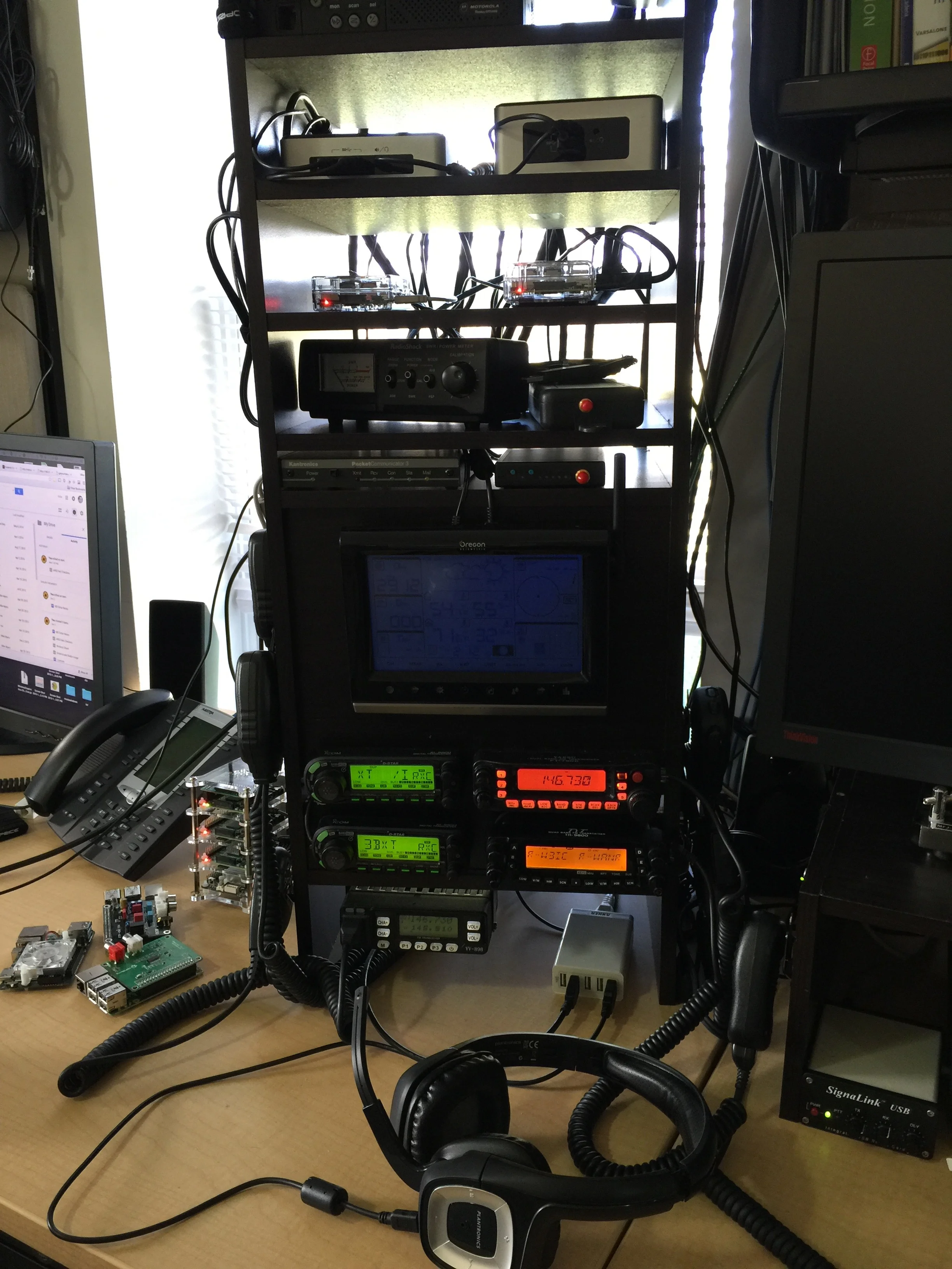 I am going to attempt to put a small rack under the desk and rack mount the transcievers and build a panel for the rf connectors and label them. I am not sure if any of this will help though.